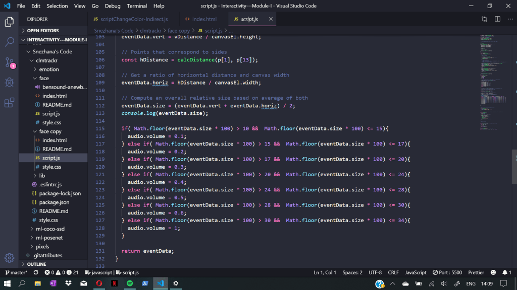 This Thursday we met up with Jens for our coaching session. Since we were okay code -wise with our sketches, we focused more on asking more question about what are we supposed to work towards to. Jens explained to us that we should create an interactive experience in a sense from using the sketch but without the ability to control the system directly and intentionally. It is important to break the link between the directness and the input and output. For example naturally if there is a button and that can be pressed, the expected is to face some kind of output or feedback. He explained that we should try to create something that is not too direct with the interaction and it is harder to understand how the system is being controlled. He also suggested to try and brainstorm again to get some sketches on paper and try to be more creative in non direct interaction.